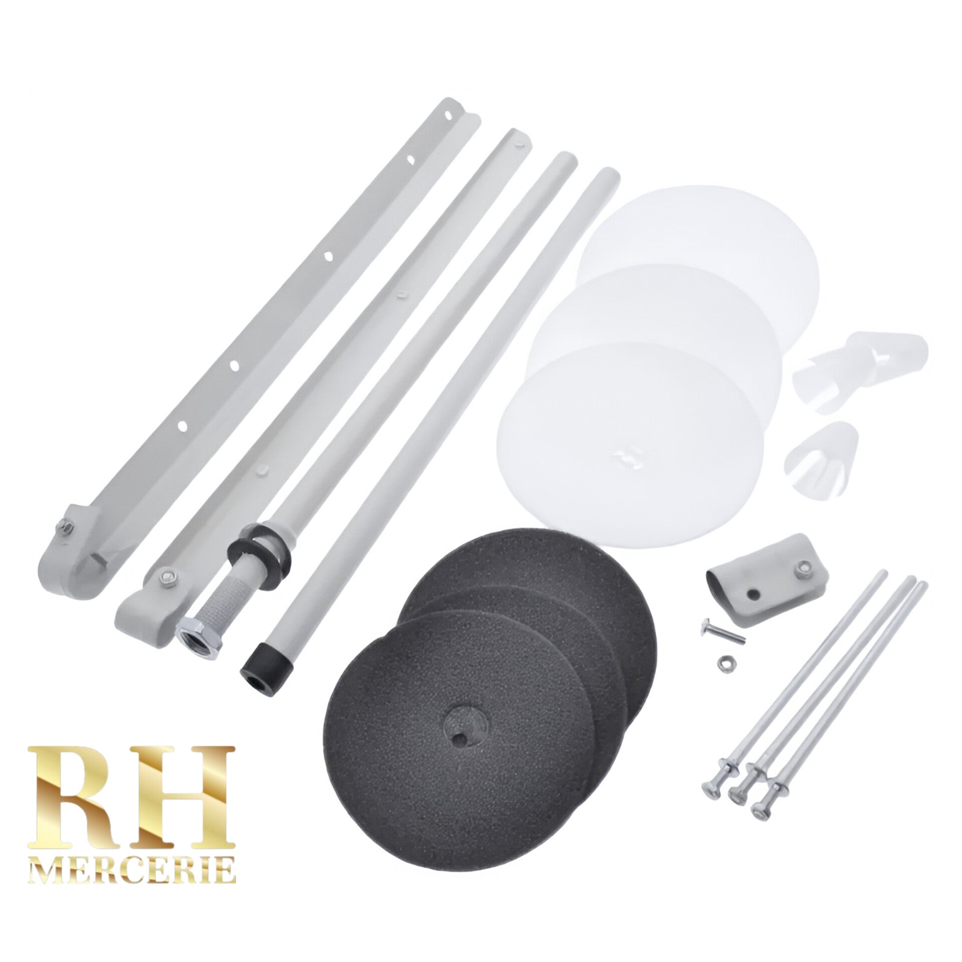طقم كامل لحامل خيط معدني مخصص للماكينات الصناعية، يتسع لبكرتين من الخيط. يأتي مع جميع القطع اللازمة للتثبيت (قضبان، قواعد، أقراص تثبيت، براغي...)، يضمن تغذية سلسة ومنظمة للخيوط أثناء العمل.