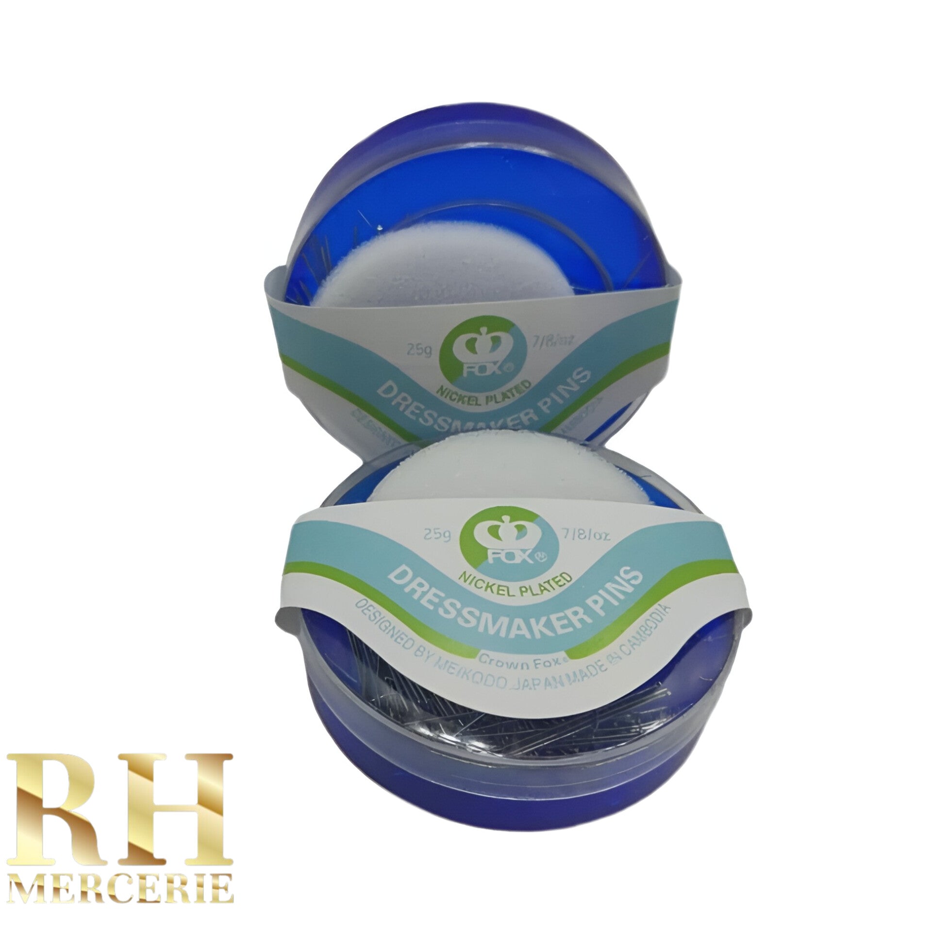 دبابيس نيكل في علبة دائرية فاخرة، تُستخدم لتثبيت الحجاب أو القماش بدقة.