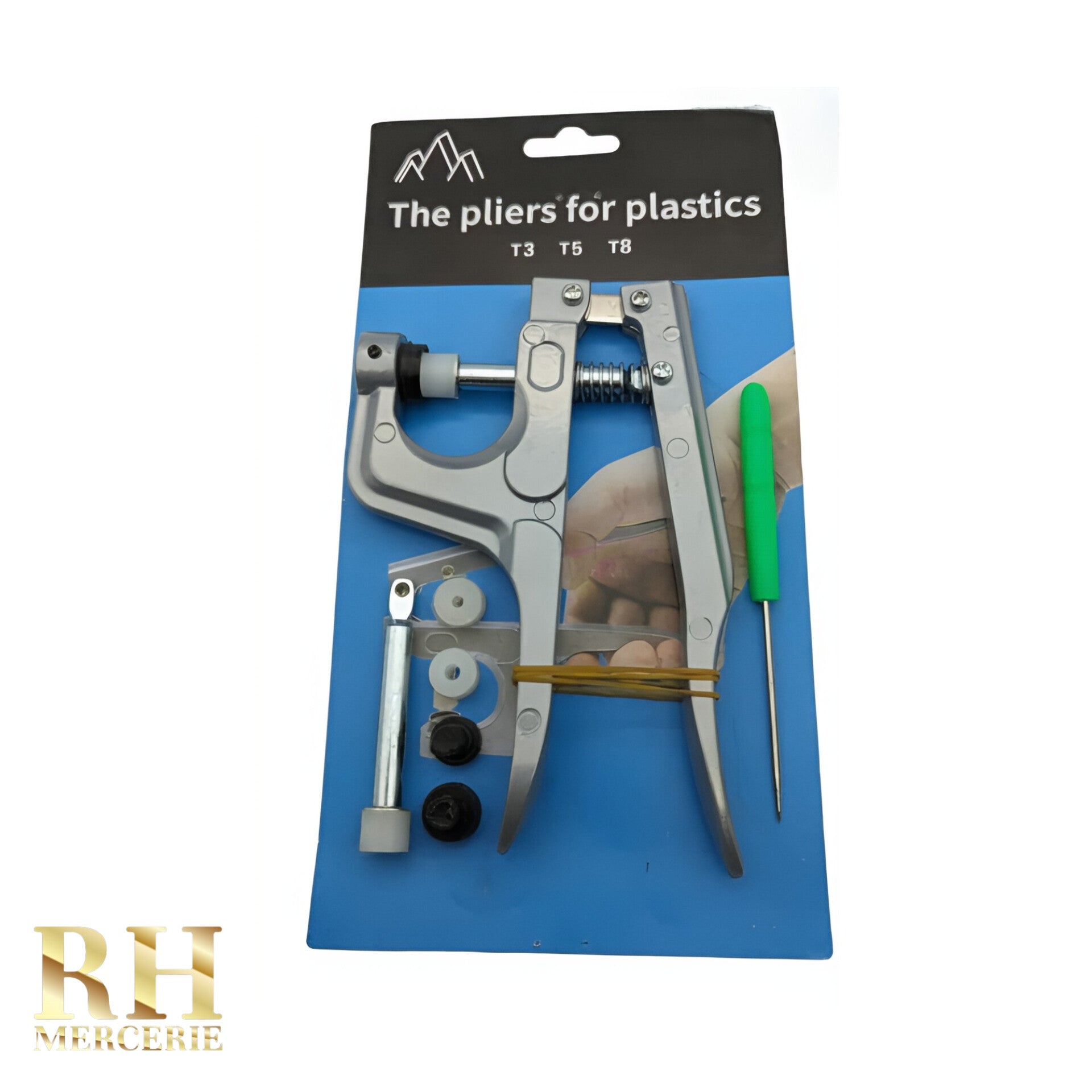 زرادية متعددة الاستخدامات خاصة بتركيب أزرار الضغط البلاستيكية من النوع T3 وT5 وT8. تأتي مع مجموعة من الأدوات المساعدة لسهولة وسرعة التركيب، مثالية لخياطة الملابس والإكسسوارات وملابس الأطفال.