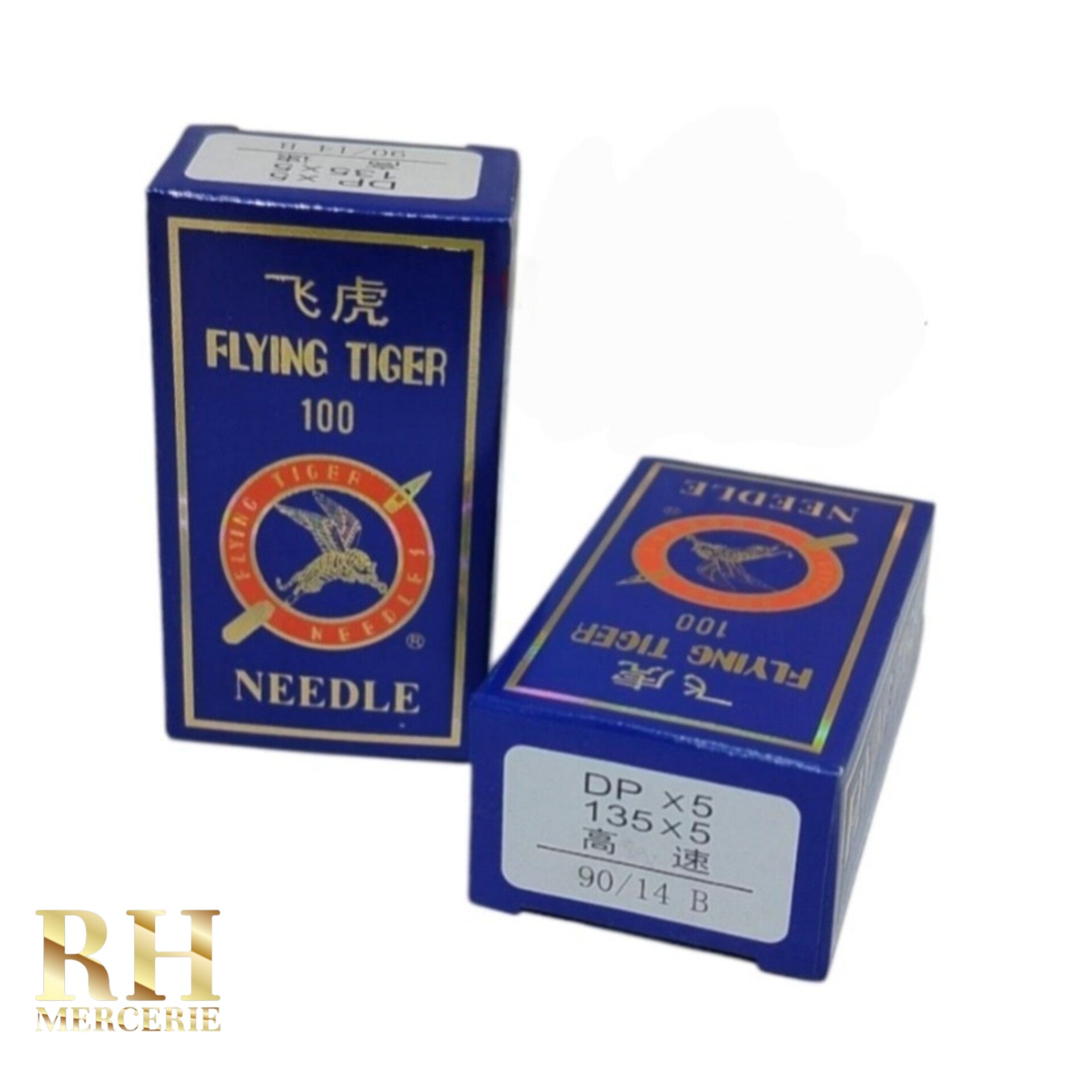 إبر خياطة صناعية من نوع DP×5 (135×5) عالية السرعة، مثالية للماكينات الصناعية، تقدمها ماركة Flying Tiger المعروفة بجودتها.