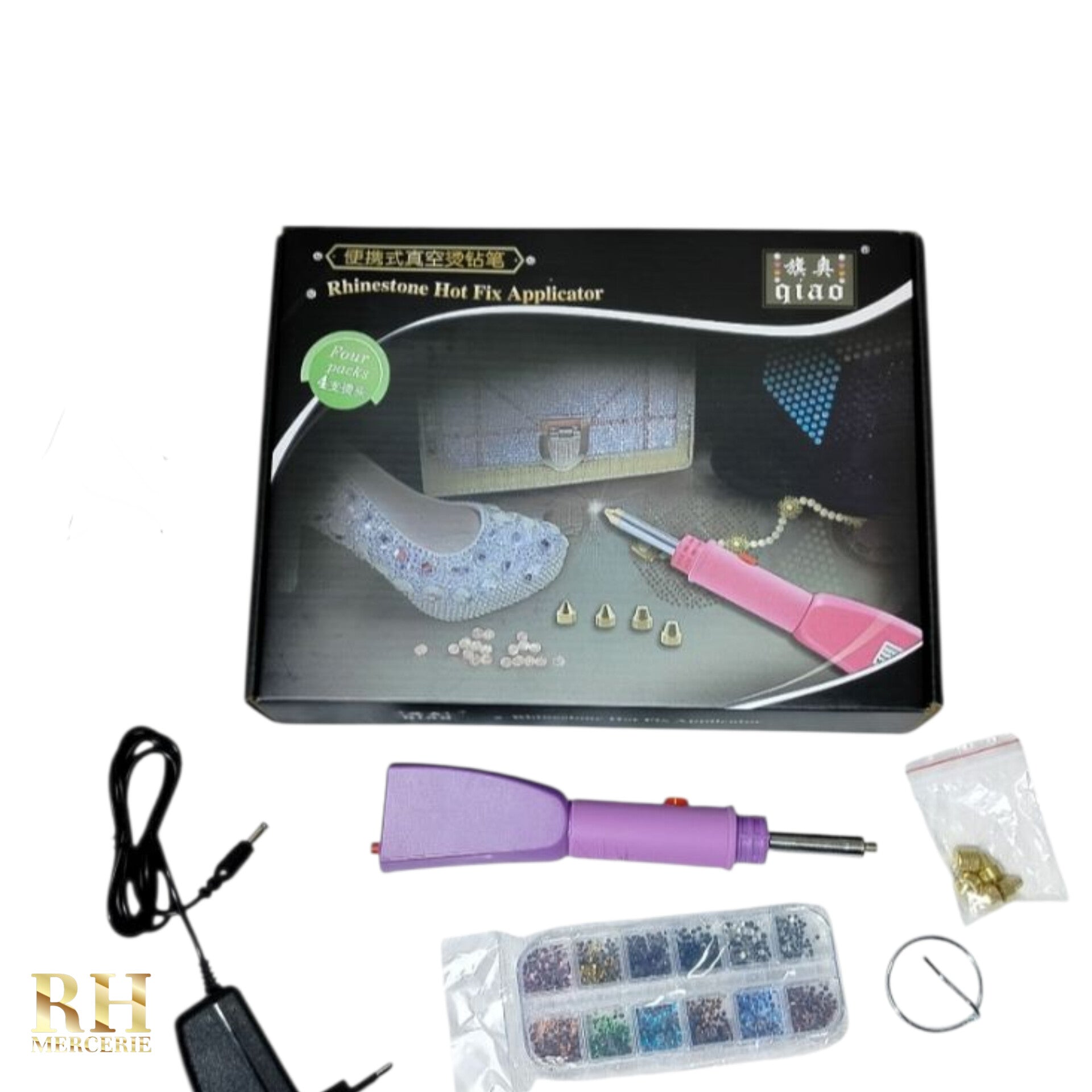 مكواة كهربائية متخصصة في تثبيت الحجارة اللامعة (إستراس) على مختلف أنواع الأقمشة بسهولة واحترافية.