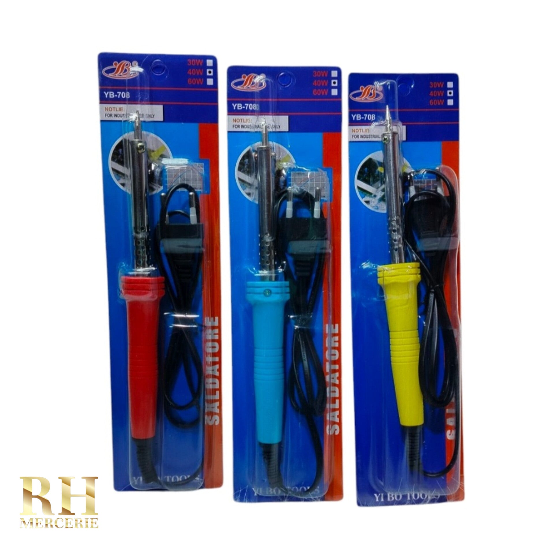 مكواة لحام كهربائية بقدرة 40 واط، مثالية لإنجاز المهام الدقيقة في الإلكترونيات أو الأشغال الصناعية الخفيفة. تأتي بتصميم عملي وأنيق، متوفرة بثلاثة ألوان جذابة: الأحمر، الأزرق، والأصفر.