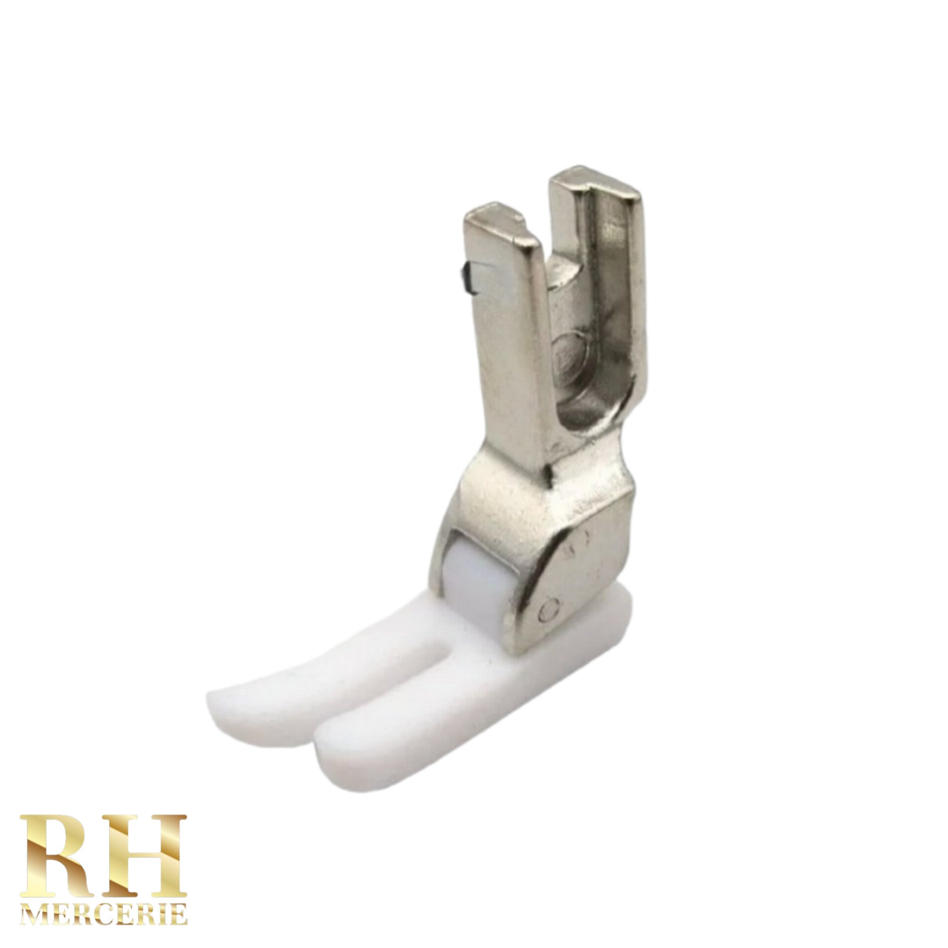 قدم بلاستيكية مسطحة، مثالية للأقمشة الحساسة أو المواد اللامعة التي قد تلتصق بالقدم المعدنية.